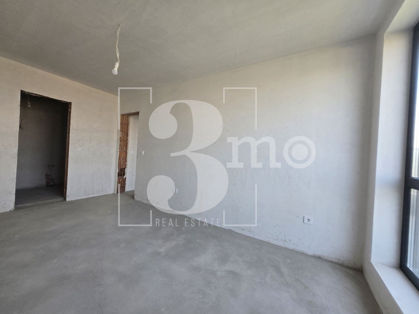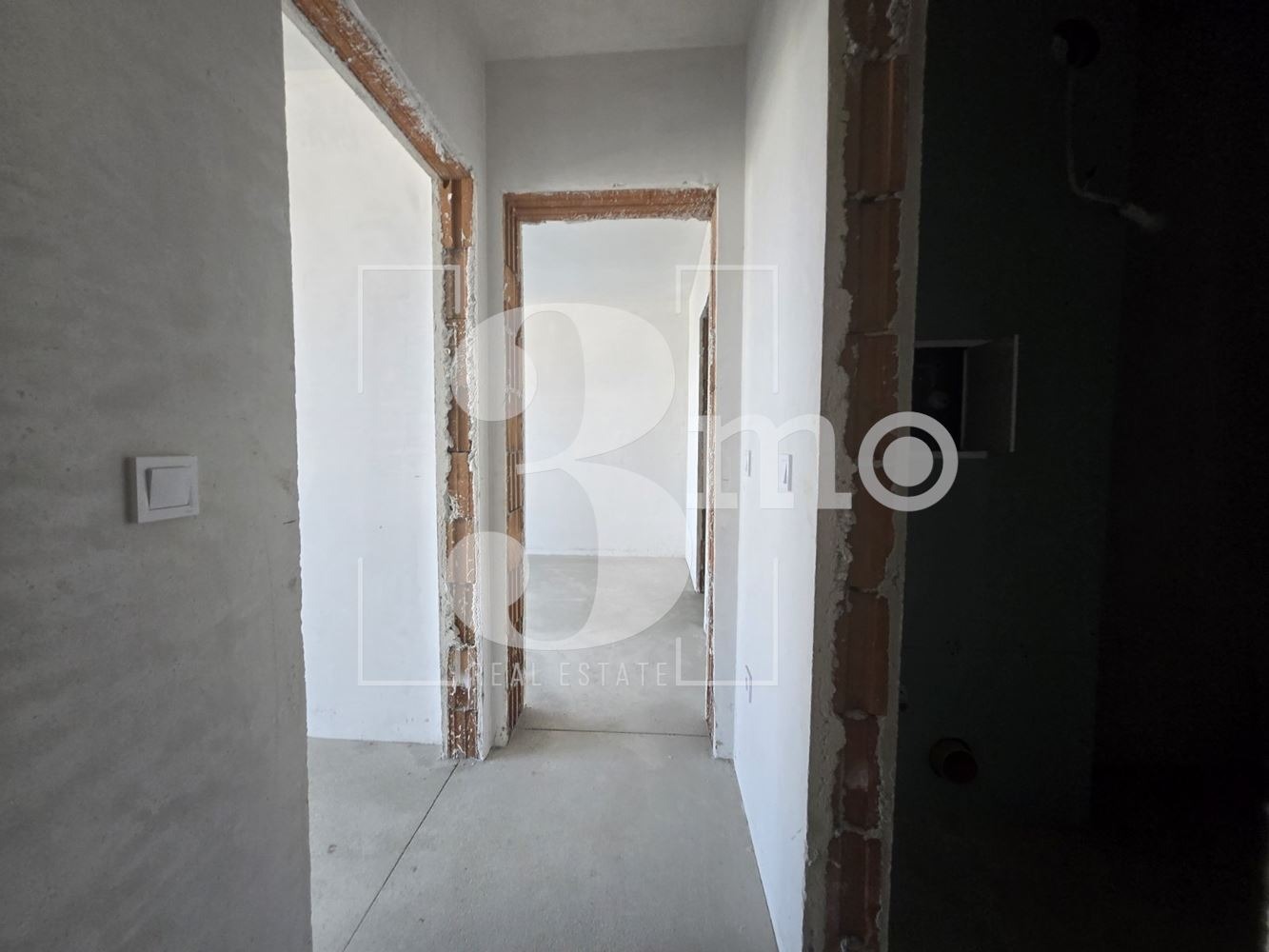 Разпределението му е следното: дневна с кухненски бокс, две спални, две бани с wc, склад и тераса.