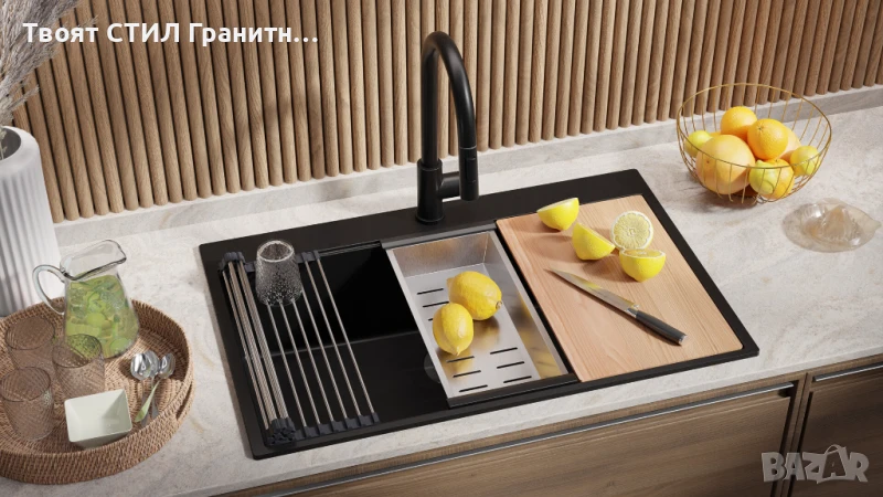 Тази конфигурация превръща вашата мивка в многофункционално работно място, подобрявайки както удобството, така и организацията на кухнята.