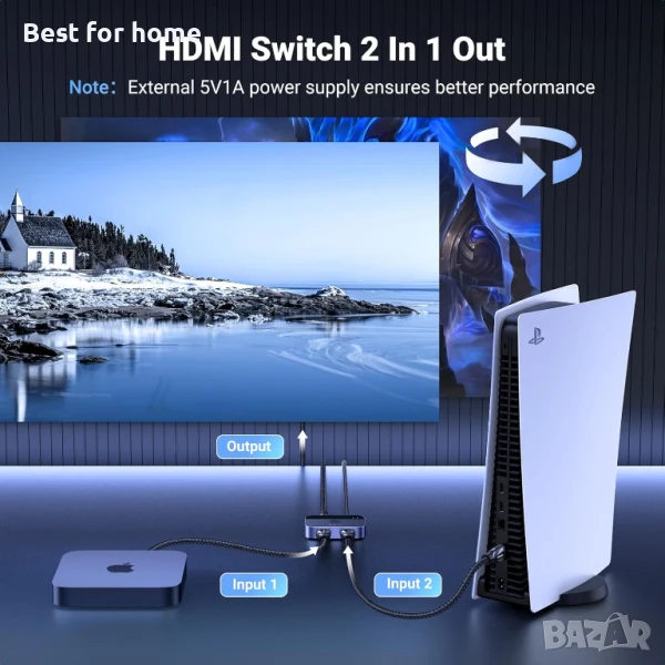 Работи с множество устройства: Този HDMI превключвател работи с повечето устройства със стандартен HDMI интерфейс. Вход: Съвместим с Nintendo Switch/Switch 2, PS5/PS4/PS3/, компютър, Xbox 360, Xbox One, Blu-ray DVD плейър, Roku TV, Firestick и др. Изход: Съвместим с HD-Ready или Full HD телевизори, монитори, проектори и др.
