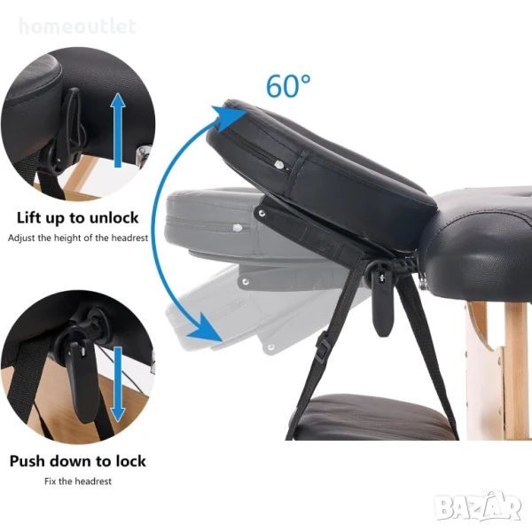 Регулируемата облегалка за глава (0-60 градуса) и поставката за ръце улесняват настройването до най-релаксиращата и подходяща позиция.
