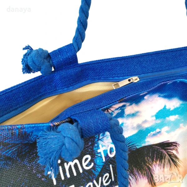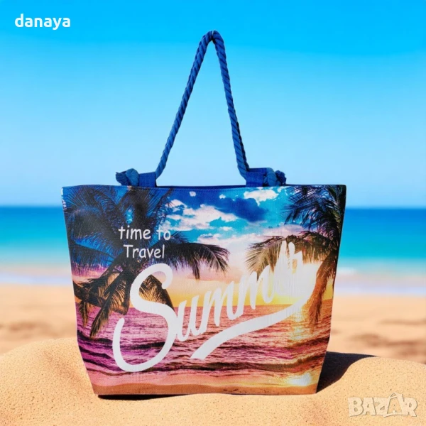 Дизайнът е с надпис Summer Time to Travel и цветен принт в три различни варианта, които носят истинско лятно и морско настроение. Здравите дръжки тип корабно въже осигуряват комфорт при носене на рамо, дори когато чантата е пълна.