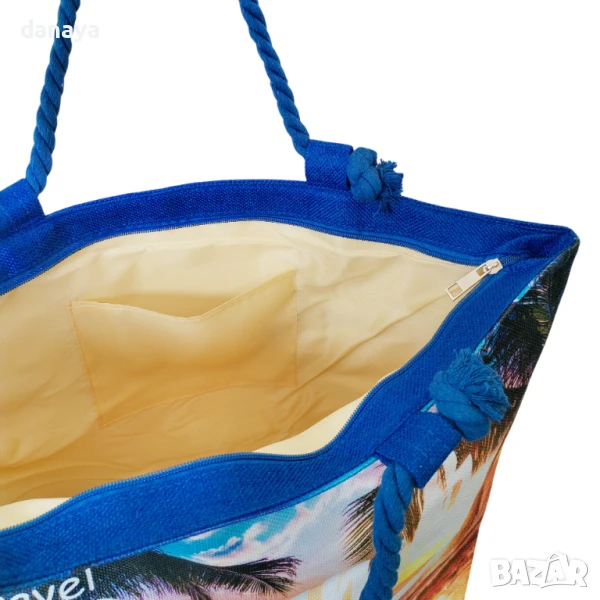 Създадена специално за любителите на стилни аксесоари, тази дамска плажна чанта с цип ще бъде ваш верен спътник във всяко лятно приключение!