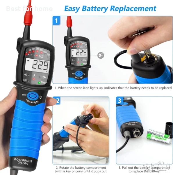 Мултиметърът GR-38A е проектиран за лесна употреба и точни измервания. Със своите полезни функции и надеждна работа, той е задължителен инструмент за електротехници и любители на „Направи си сам“.