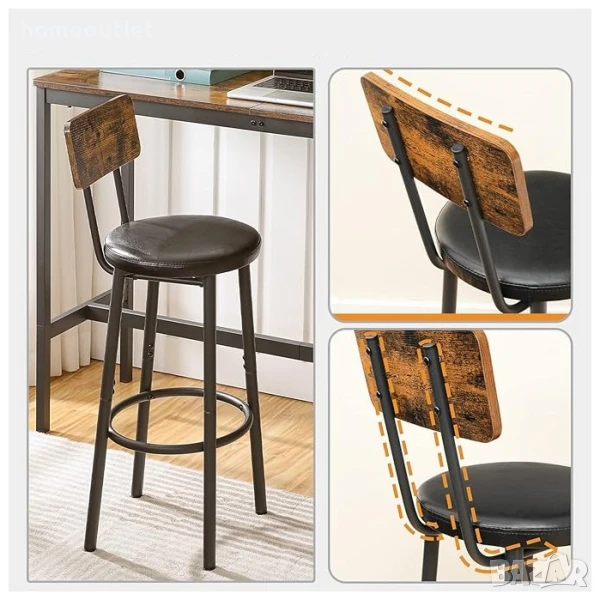 Всеки бар стол е изработен от качествена плоча от дървесни частици, PU кожена дамаска на седалката и удебелен метал, който е масивен и може да издържи натоварване до 100 кг.