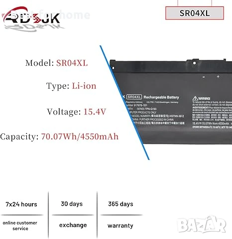 Номера на резервни части: SR04XL SRO4XL 917678-171 917678-1B1 917678-2B1 917724-855 HSTNN-DB7W HSTNN-IB7Z HSTNN-IB72 TPN-C133 TPN-C134 TPN-Q193 SR03XL SRO3XL HSTNN-DB8Q TPN-Q194 TPN-Q211 L08934-1B1 L08934-2B1 L08855-856 L08855-855 SR04070XL SR04070XL-PL TPN-C144 SR03052XL SR03052XL-PL L08934-2C1 HSTNN-IB8L