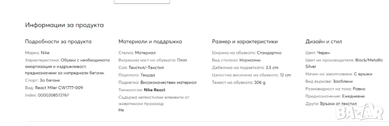 Nike React Miler осигуряват плътно прилягане с подсилени отвори в средната част на стъпалото, но използват по-широка предна част, за да позволят разтваряне на пръстите и подуване при по-дълги бягания. Вдъхновената от спортистите форма на междинната подметка осигурява меко и плюшено усещане за комфорт при стъпване, докато изцяло изработената междинна подметка от пяна React осигурява отзивчиво и дълготрайно омекотяване. Цялостната гумена външна подметка осигурява защита, сцепление и издръжливост, а целевите зони са покрити с гума с висока износоустойчивост.