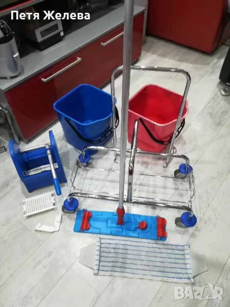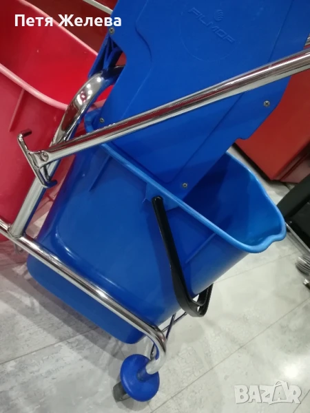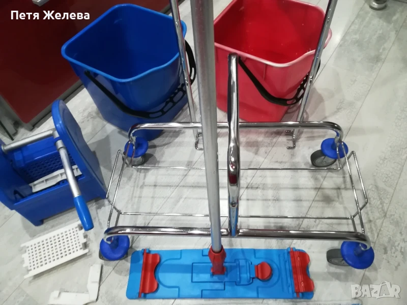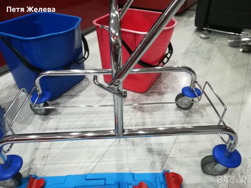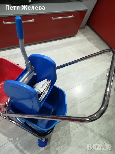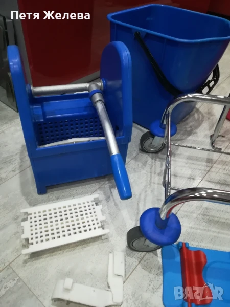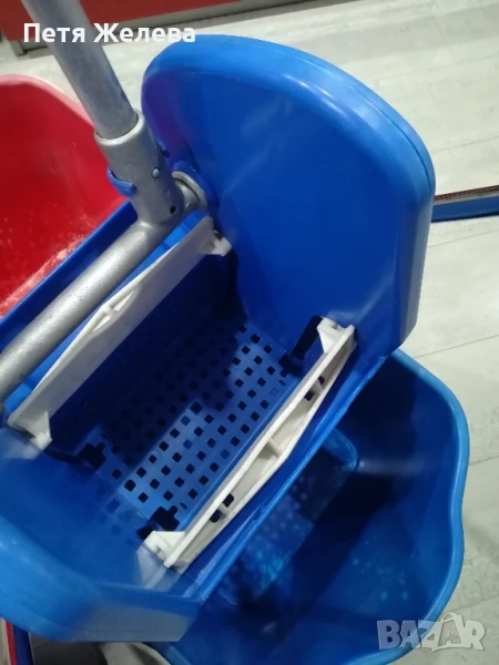 Внос от Австрия в отлично състояние. Професионална преса за изцеждане на всякакви видове мопове. 4 броя въртящи и противоударни колела -8см; 2броя кофи х 25л всяка.Конструкция от здрава хромирана стомана. П -образна дръжка. Размери: ширина 70;дълбочина 41;височина 91см. Пращам с куриер