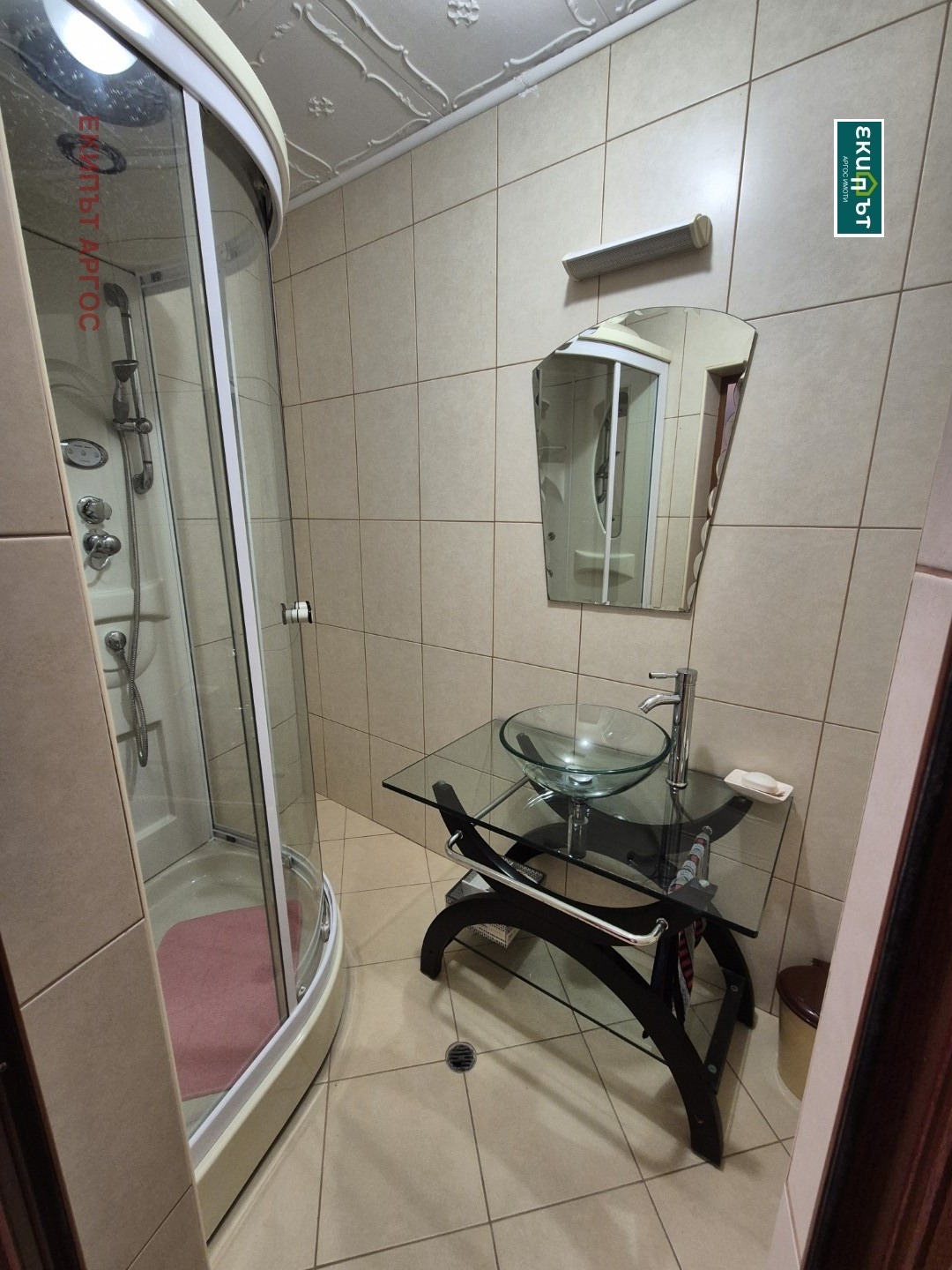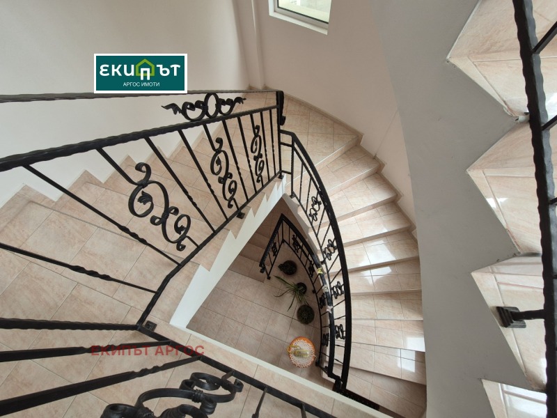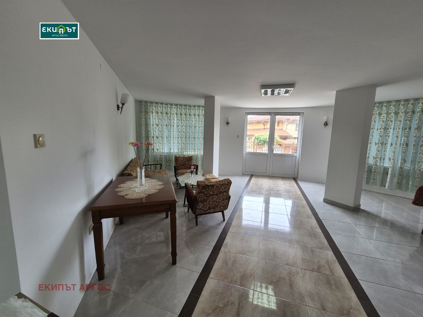 Първи етаж: просторно фоайе, хол с кожена мека мебел и баня с тоалетна, голяма трапезария и свързана с нея оборудвана кухня, 3 големи помещения, които са на тухла и клиента може да ги направи по собствено желание за сауна, джакузи и други видове помещения, помещение за два големи бойлера по 300литра свързани със слънчеви батерии, ток и котел.