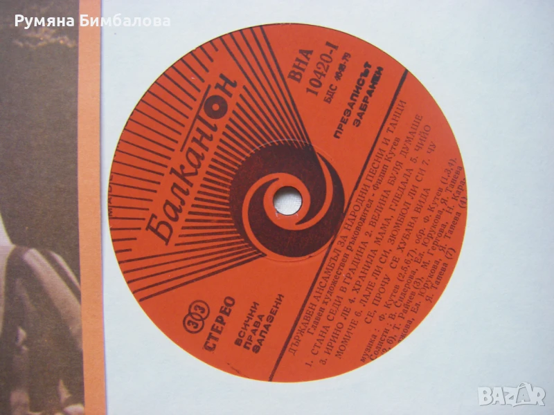 Грамофонна плоча - ВНА 10420 - Държавен ансамбъл за народни песни и танци с главен художествен ръководител Филип Кутев