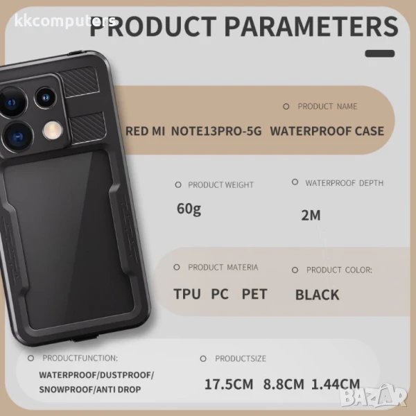 REDPEPPER A Series IP68 водоустойчив калъф за Xiaomi Redmi Note 13 Pro 5G предлага пълна 360-градусова защита и е създаден за екстремни условия и активен начин на живот. Изработен от висококачествени материали – силикон, TPU, PET и PC, този калъф е напълно водоустойчив, удароустойчив и прахоустойчив.