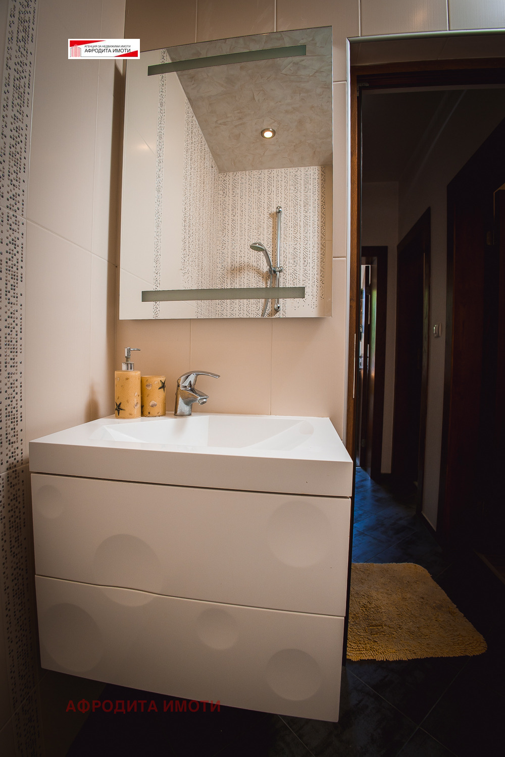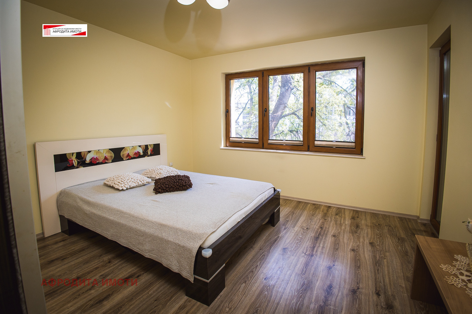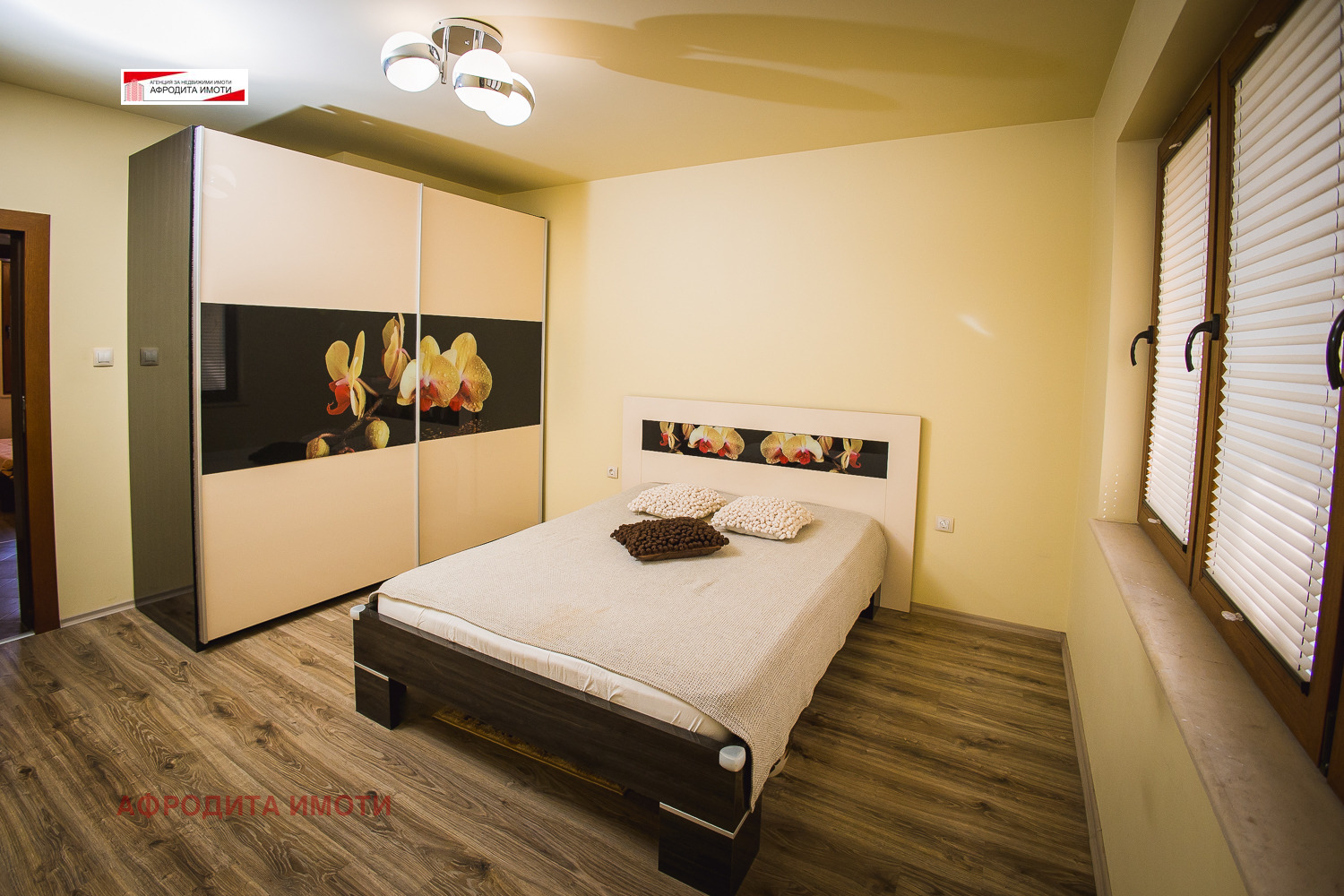 Площта е разпределена между коридор, хол с кухненски кът, 2 спални, баня с тоалетна и 2 тераси. Имотът е с външна изолация -Licata Швейцария, нов покрив Tondach и улуци, подменена Вик и ЕЛ. инсталация, нова пвц дограма троен Стъклопакет, интериорни врати и нови подови настилки, мазилки, всичко изпълнено с качествени немски и швейцарски материали.