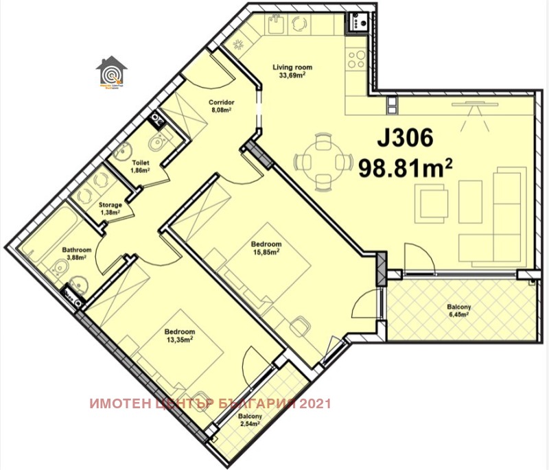 Апартамента е разположен на 6ти етаж с чиста площ от 99кв.м .