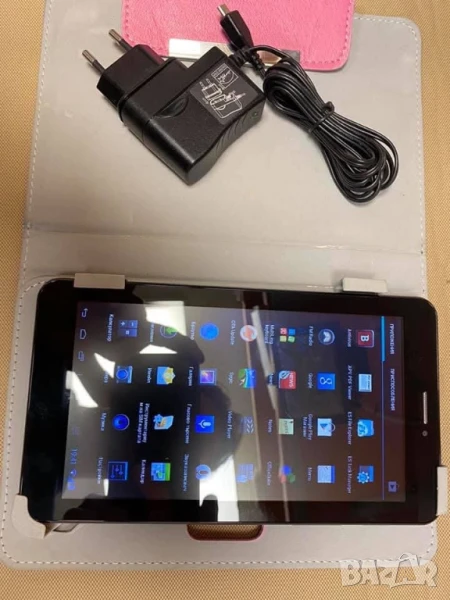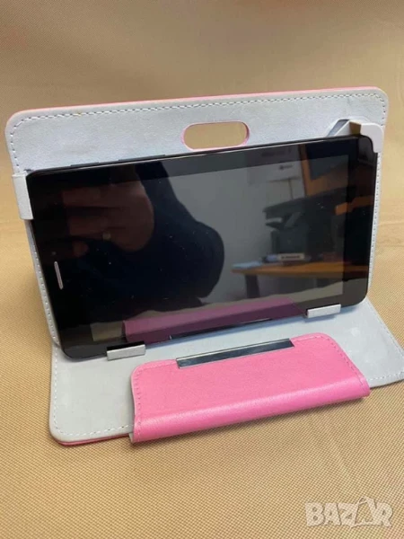 10 инчов таблет с HD качество и двойна карта SIM + Калъф. Марка: Onfineshop; Операционна система: Android 4.4.2; Размери на екрана: 10 инча; Памет: 16GB; Скорост на процесора: 1.8GHz; Резолюция на екрана: 1280 на 800 мега пиксела; Процесор: MTK6582 Octa Core; RAM памет: 2GB; Цвят: Златен; GPU: Mali-400MP; Резолюция на видеото: 640 на 480 за предна камера и 1280 на 720 за задна; Вид камера: 5MP Interpolation предна камера и 13MP Interpolation задна; Безжична връзка: 802.11b/g/n Wi-Fi; Сензори: акселерометър, гравитация, светлина; Батерия: издържа до 3 часа при употреба и до 60 часа в standby; Начин на управление: чрез докосване и 10 опорни точки; Bluetooth: Има; Карта за SD: тип Micro до 32 GB; Честоти на прихващане: 2G – GSM 900/1800/1900MHz; 3G – WCDMA 850/1900; Вградени камери: 2 броя – предна и задна. Какво ще намерите в опаковката 1 брой 10 инчов таблет със система Android 4.4.2; 1 брой кабел за зареждане; 1 брой ръководство за употреба; 1 брой калъф от кожа универсален.181лвЕконт
