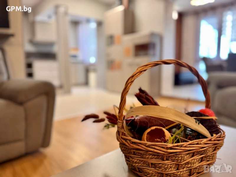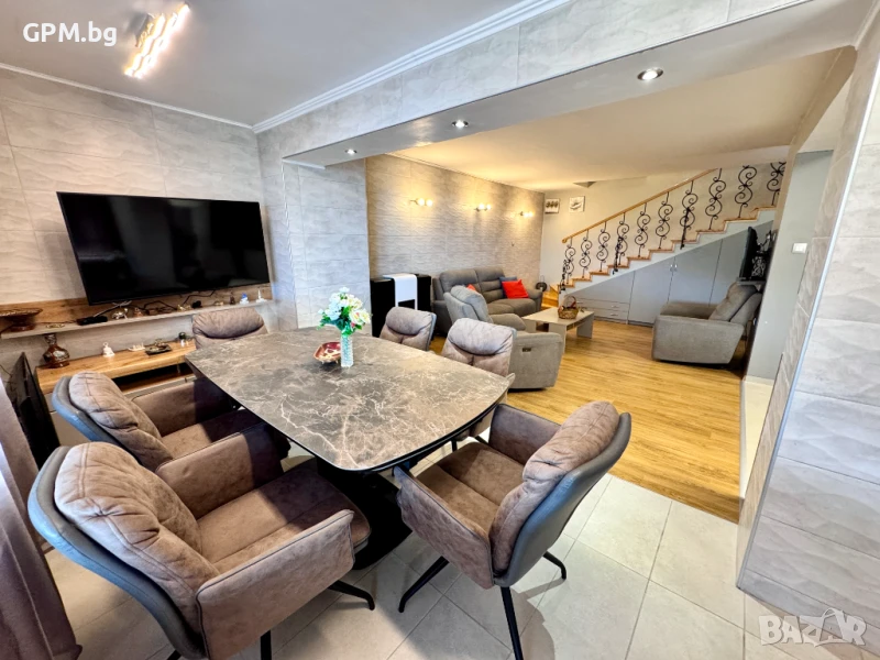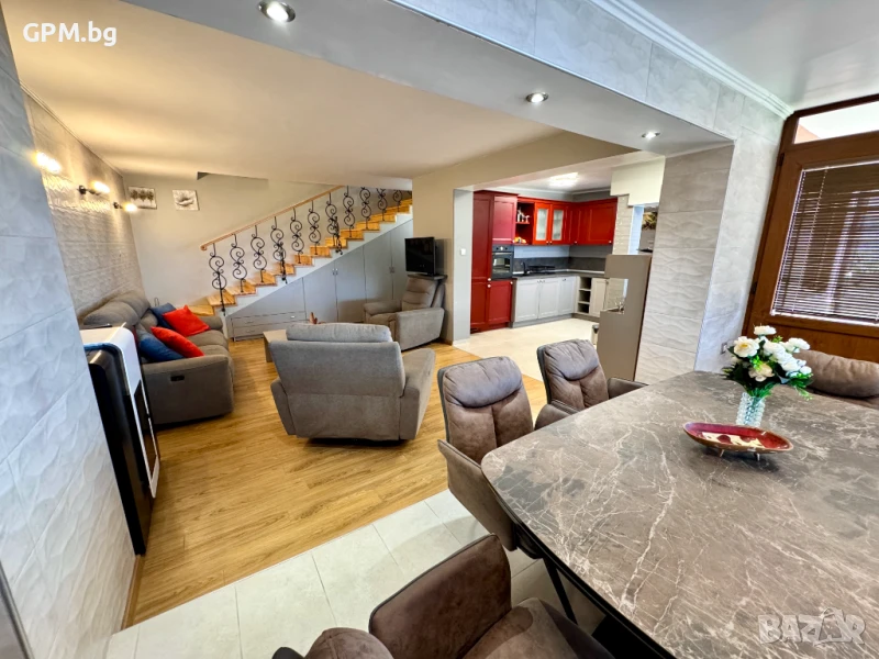 Общите помещения включват просторна дневна с трапезария, напълно оборудвана кухня и голяма тераса с гледка към морето – идеална за сутрешно кафе, вечерни разговори и залези.
