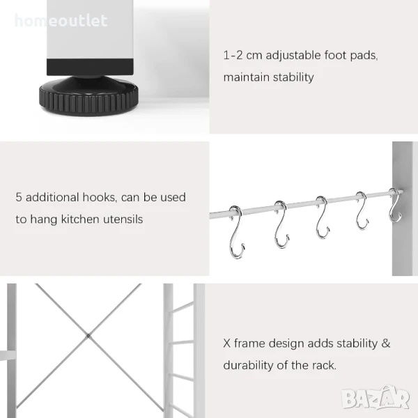 Перфектна като кухненска стойка за пекарна, органайзер за подправки, стойка за съхранение в офиса, допълнителен помощен рафт, органайзер за чинии, стойка за микровълнова фурна или други кухненски уреди и т.н.