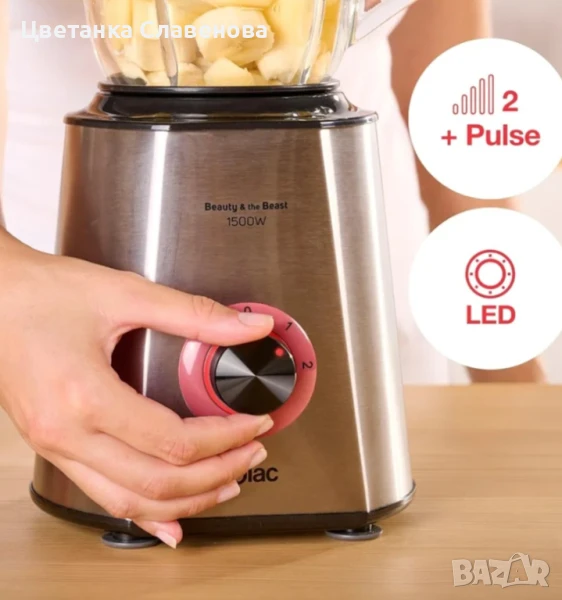 Мощен 1500 W мотор: Beauty and the Beast 1500 предлага максимална мощност за перфектни резултати. Смесвайте смутита, супи, сосове, коктейли, гранита и много други за нула време. С 6 остриета от неръждаема стомана.