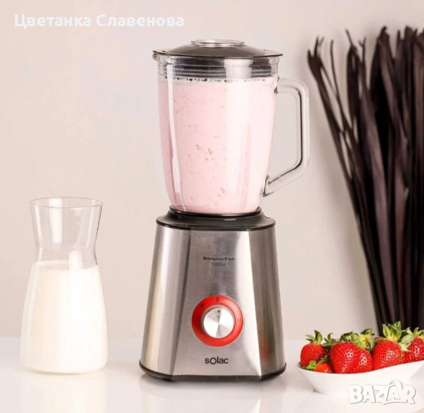 1300 W: осигурява максимална мощност за най-добри резултати. Приготвяйте всички видове смутита, пюрета, сосове, кремове, коктейли, сламки и много по-бързо. Разполага с остриета от неръждаема стомана