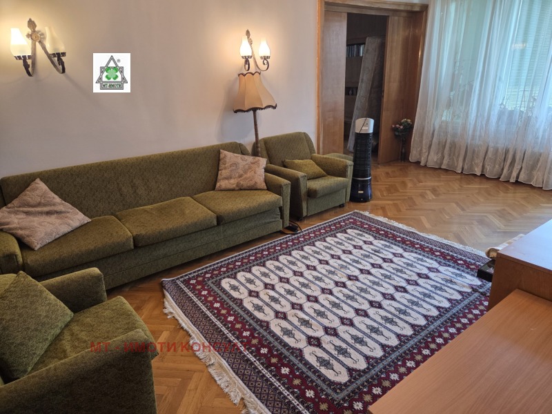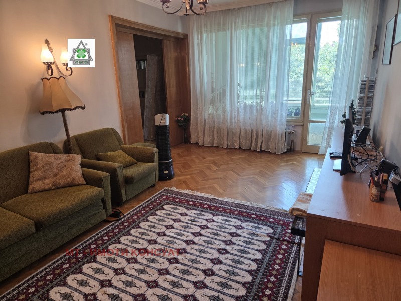 Дава се под наем 3-стаен апартамент, на уникално и предпочитано място - срещу Военномедицинска академия, в близост до тролейни и автобусни спирки и метростанция 'Медицински университет', магазини, училища и детски градини. Подходящо е за семейсство / двойка, без домашни любимци. Светло и просторно жилище, на 4-ти надпартерен етаж, без асансьор, с площ по нот.акт от 86 кв.м., без балконите. Състои се от антре, хол, преход към стая, още една стая, самостоятелна кухня, оборудвана, без миялна, баня и тоалетна, три балкони с обща площ от 19 кв.м, единият е над 10 кв.м, с маса, столове и сенник. В двете стаи има гардероби, шкафове, килими, пердета и щори. Входът на кооперацията е чист и боядисан. Наемателят може да си извади стикер за паркиране в 'Зелена зона'.