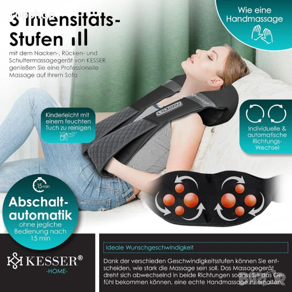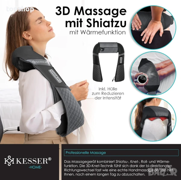 НОВ Шиацу масажор за врат, рамене и гръб с чанта KESSER® Масаж с топлина за Врат, гръб, рамене...