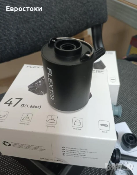 Преносима въздушна помпа FLEXTAILGEAR Mini Pump Pro, електрическа мини помпа за надуване/изпускане, LED фенерче с 3 режима, 800mAH акумулаторна батерия, 180L/мин.
