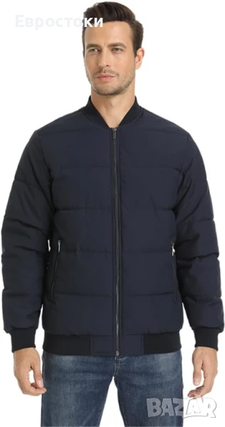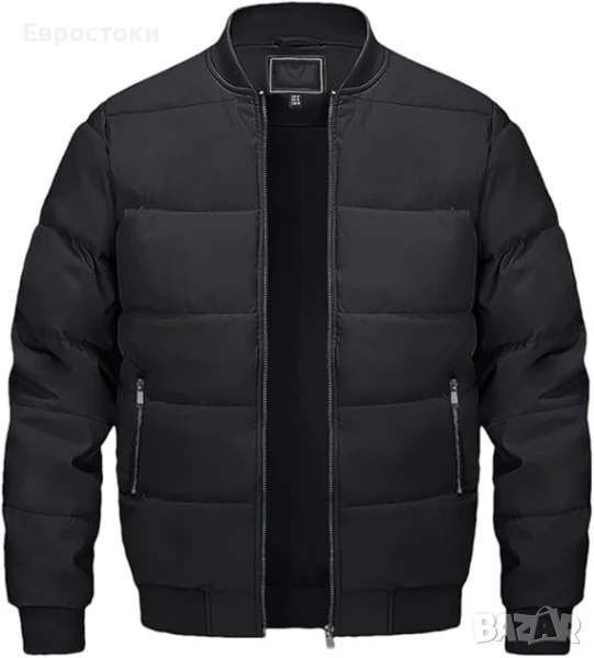 MAGCOMSEN Ветроупорно мъжко ватирано бомбър яке с джобове с цип, топло и удебелено. Черно Размер M