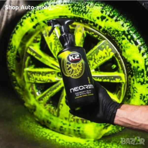 Създаден както за професионалисти, така и за безкомпромисни ентусиасти на грижата за автомобила. K2 Neorim със своята зелена формула ефективно подчертава всички замърсявания по джантата, без да оставя място за пропуски. Дава ви увереност, че нищо не е пропуснато. Неоновият му цвят осигурява WOW ефект, а гъстата пяна се задържа по джантите достатъчно дълго, за да осигури продължително действие и по-дълбоко почистване.