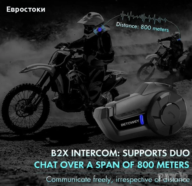 Мотоциклетна комуникационна система BETOWEY B2X, двойна (2 слушалки), Bluetooth интерком за каска