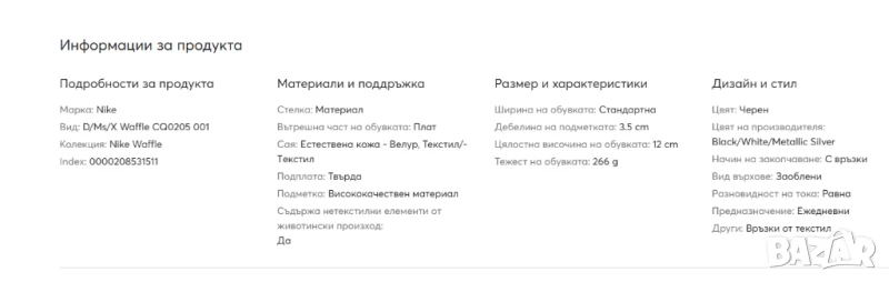 Гума: Каучуковата подметка осигурява отлично сцепление и издръжливост върху различни повърхности. Благодарение на своята еластичност тя абсорбира ударите, като увеличава комфорта при ходене или бягане.