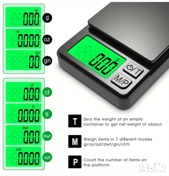 Мини джобна везна дигитална 0.01 - 500 гр.+ батерия → Обява 50716823