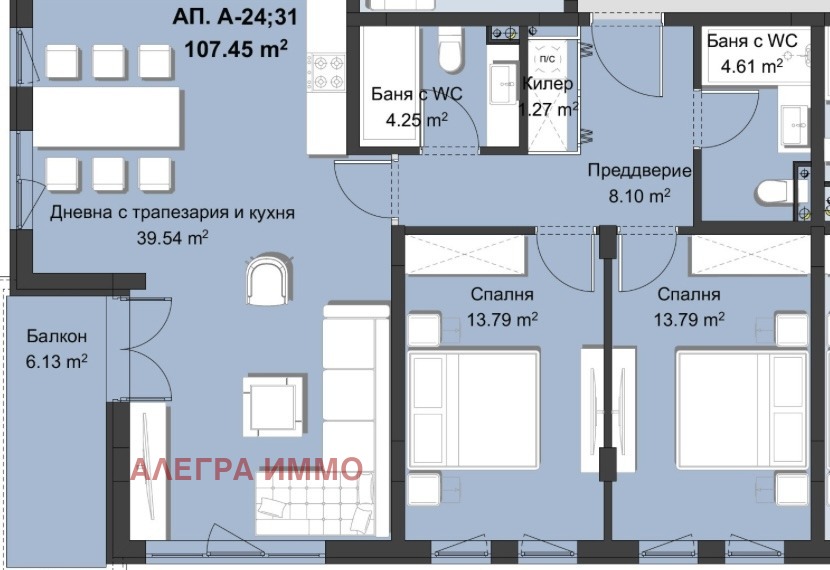 Тристаен апартамент с обща квадратура от 131.51 кв.м., на 4-и жилищен етаж. Жилището разполага с килер.