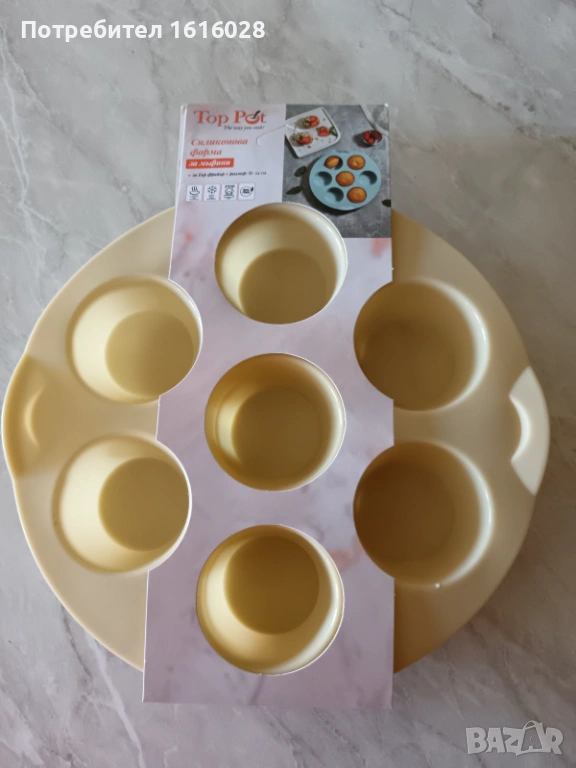 3. Силиконов молд със 7 гнезда за мъфини или други творчески изделия.Може да се ползва до +250 градуса или замразява до - 50 градуса.Ф.24 см.