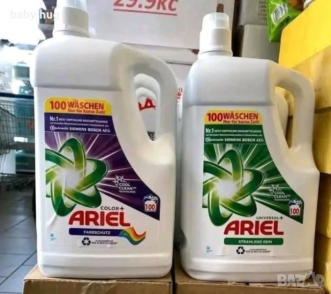 Ariel Universal+ (зелен) – за бяло и универсално пране, придава блясък и премахва петна;
