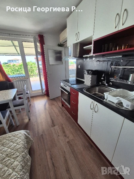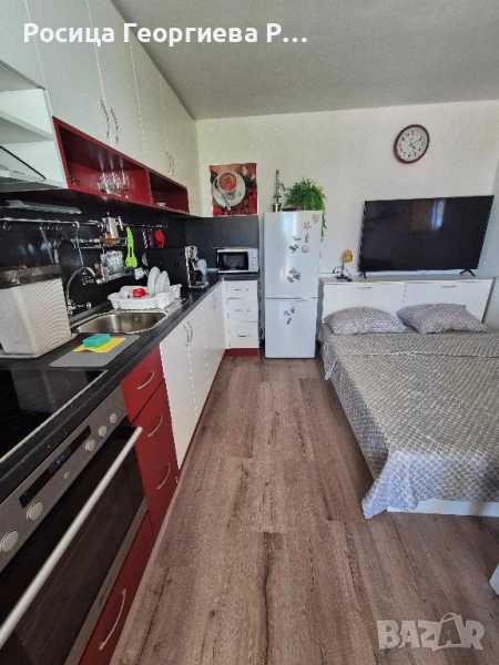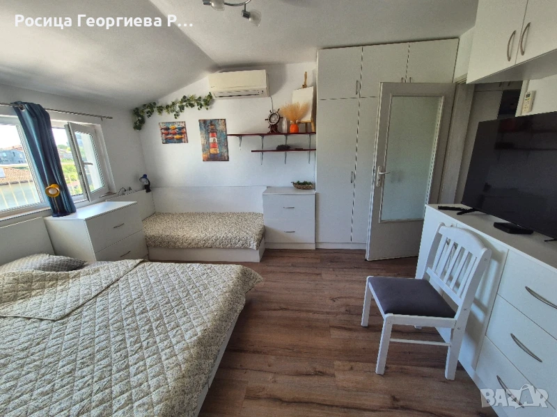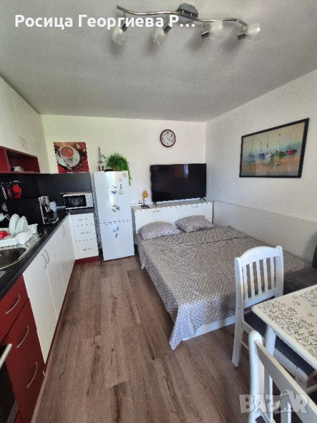 Апартаментът се състои от преходна стая със спалня за двама и едно легло с гардероби, шкафове и телевизор, хол -дневна със спалня за двама и с разтегателен диван за един човек , маса със столове и кухненски модул , антре с гардероб и