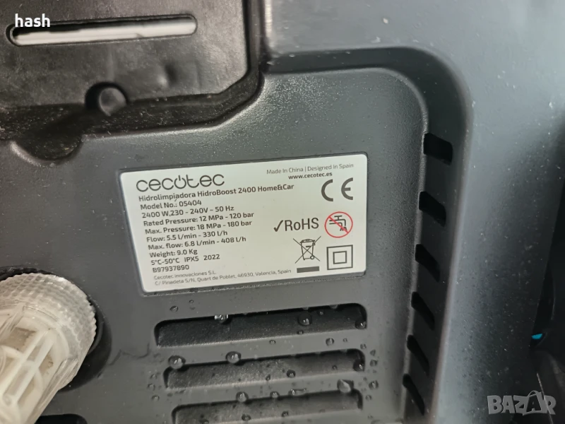 Водоструйка Cecotec HydroBoost 2400 AdvanceClean, 180 BAR, 480 L/h, 2400 W, включени аксесоари