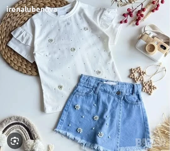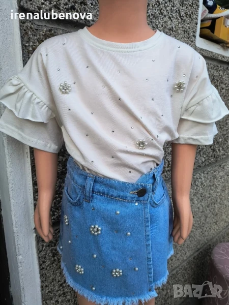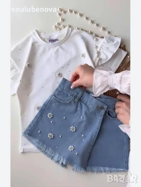 Разкошен комплект тениска и дънки с камъни → Обява 50719446