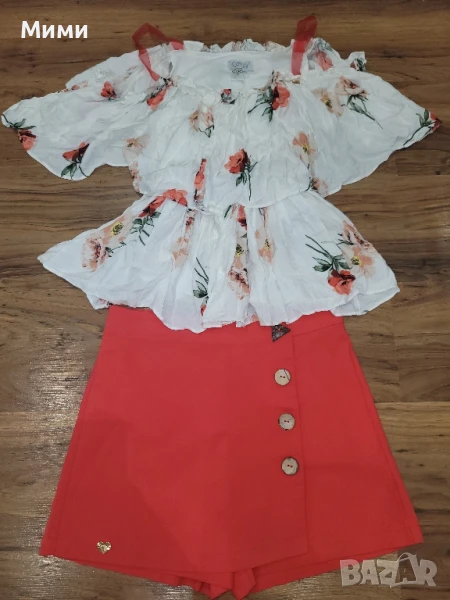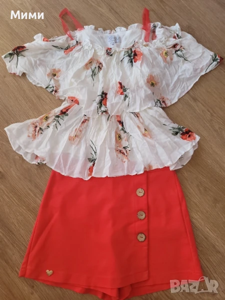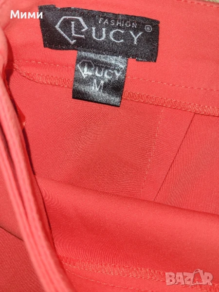 Комплект на Lucy в коралов цвят. Състои се от пола панталон и свободна блузка, прикриваща несъвършенствата на тялото. Размер М. Обличан е веднъж, неразличим от нов.
