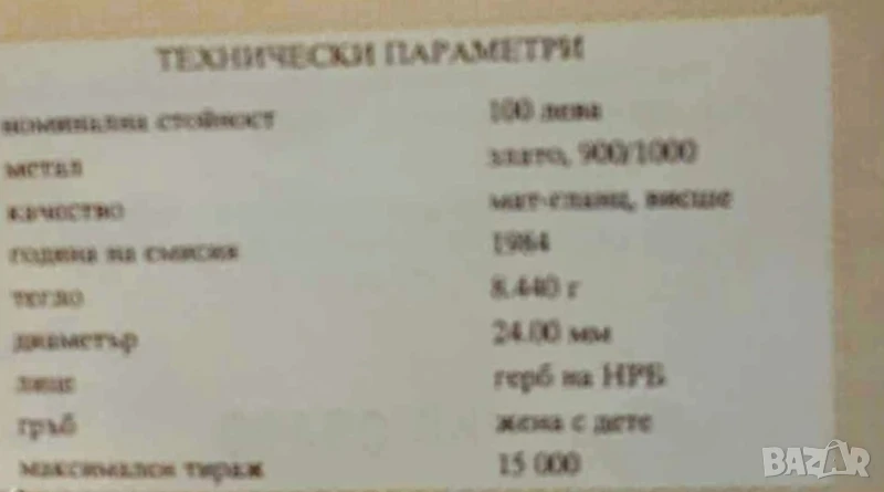 Сертификат за 100 лева 1984 злато → Обява 50719638