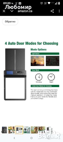 Регулируеми настройки и 4 режима на таймера: Вратата на кокошарника с регулируеми настройки за време на отваряне и затваряне, както и чувствителност към промени в светлината или температурата. Тази гъвкавост ви позволява да персонализирате работата на вратата според вашите специфични нужди и предпочитания.
