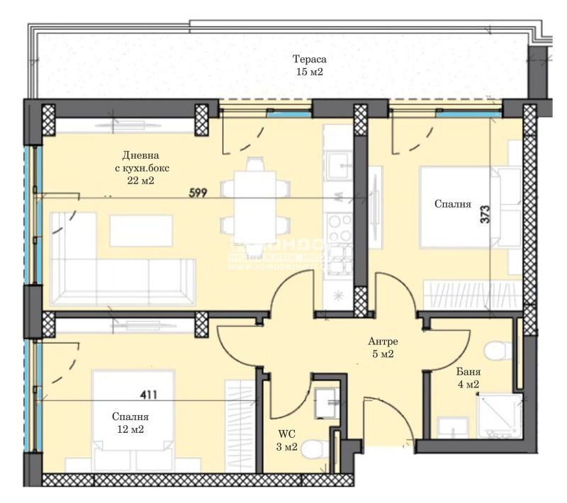Оферта 66828: Предлагаме Ви възможността да закупите тристаен апартамент с панорамна тераса в новоизграждащ се луксозен жилищен комплекс с модерна визия, проектиран да създаде максимален комфорт на живущите в него. Функционално разположени жилищни секции с елегантен силует готов да предложи комфорт и модерен начин на живот. Едно от основните му предимства е страхотната локация, отлична комуникативност и динамична пътна инфраструктура, която осигурява бърз и лесен достъп до комплекса от всяка точка на града. Той съчетава лукс, спокойствие и комфорт с подсигурени паркоместа и гаражи. Жилището се състои от дневна 22 кв.м. с кухненска част, две самостоятелни спални, баня с тоалетна, втора тоалетна, входно антре и една панорамна тераса. Основната концепция при проектирането е да се постигнат просторни и функционални стаи, с цел да се създаде максимален уют на модерното семейство. Изключителна съвременна архитектура и модерна технология на строителство. Визията е иновативна, привличаща внимание с уникалността си. Всяко жилище ще разполага с пълно окабеляване за домофон, интернет и кабелна телевизия, общите части са луксозно завършени, жилищата са с алуминиева дограма с троен стъклопакет от най-висок клас, масивна блиндирана входна врата. За удобство на живущите съществува възможността да закупят подземни паркоместа и гаражи с топла връзка към комплекса. Гъвкави схеми на разсрочено плащане спрямо възможностите на клиента в рамките на строителството или закупуване чрез Банков Кредит, на изключително изгодни условия за клиенти на агенцията !!! Приложените изображения са от завършени проекти на строителната фирма.ВИЖТЕ ОЩЕ ИЗГОДНИ ОФЕРТИ НА https://www.kondorimoti.com/ С ЕЖЕДНЕВНА АКТУАЛИЗАЦИЯ!
