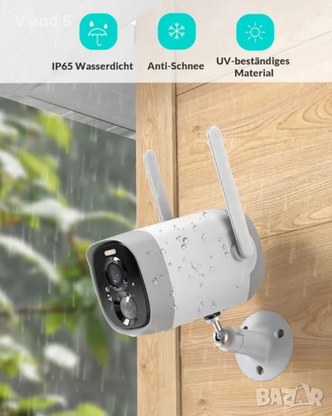 Водоустойчивост IP65 и защита на данните: външната камера за наблюдение е подходяща за всякакъв климат, слънчево време, дъжд или сняг; това е най-добрият избор за вътрешна и външна употреба; всички видеоклипове и снимки са защитени с 256-битово AES криптиране със симетричен ключ; вашата поверителност е много добре защитена.