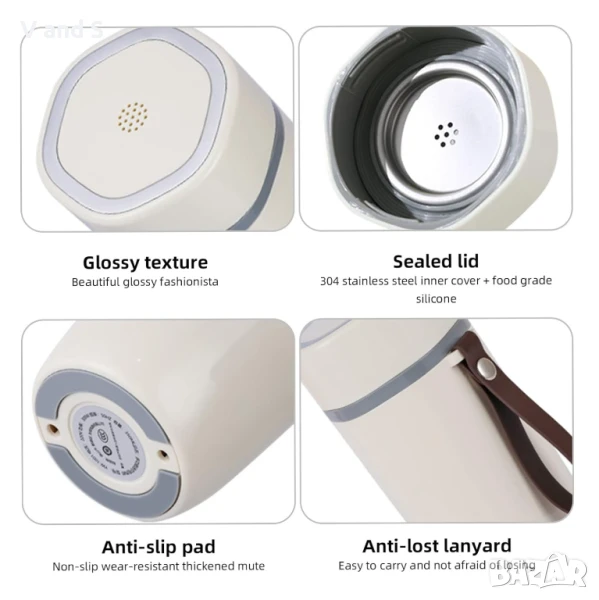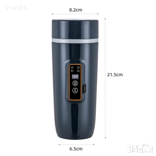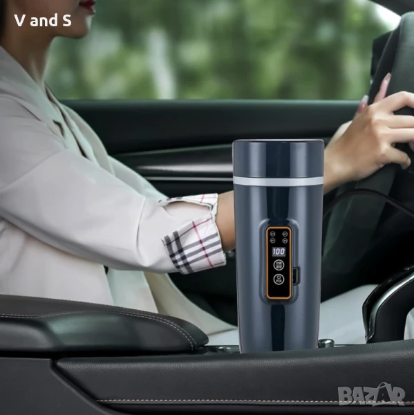 Кана за кола 12 V, CEIEVER Чаша за затопляне на кафе/чай/мляко за пътуване 350 мл, контрол на т