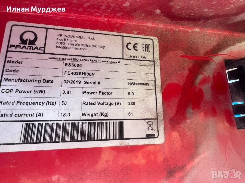 Здравейте, продавам монофазен агрегат Pramac.