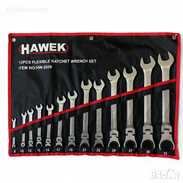 звездогаечни, тресчотни, ключове, чупещо рамо, комплект, 8-32 мм, 13 части, HAWEK, гаечни ключове, професионални инструменти, авто сервиз, ремонт, механик, ръчни инструменти