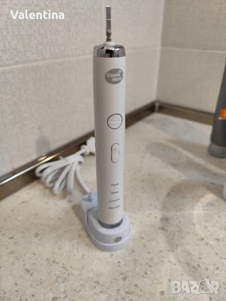 Звукова четка за зъби dm, работи с техни накрайници, които ги има във всеки техен магазин. 4 програми с различни степени на вибрация. Работи отлично.
