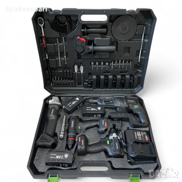 акумулаторен комплект, 5в1, гайковерт, винтоверт, ъглошлайф, перфоратор, LED лампа, 36V, 10.0A, STAHLMAYER, безжични инструменти, електроинструменти, комплект с батерия, мултифункционални инструменти, професионален комплект, строителни инструменти, ремонт и монтаж