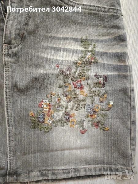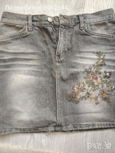 Къса черна дънкова пола с бродерия → Обява 50721602
