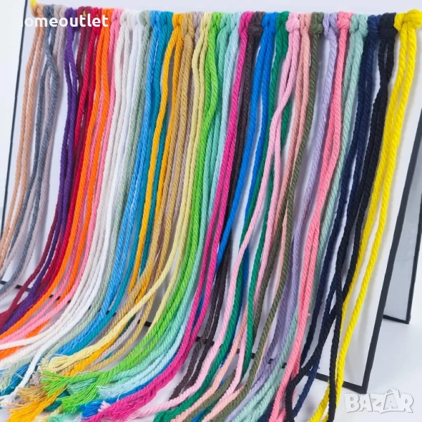 Памучният макраме шнур е по-мек, но достатъчно здрав, за да се работи лесно и да се гарантира устойчивостта на крайния продукт.