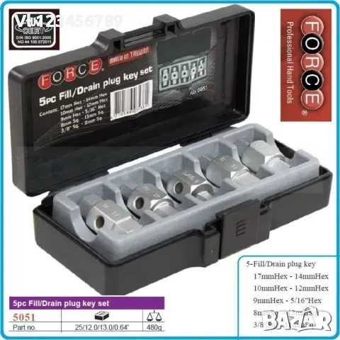 Универсален комплект за пробки 5 броя, инструменти за източване на масла, от Force, 5051