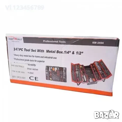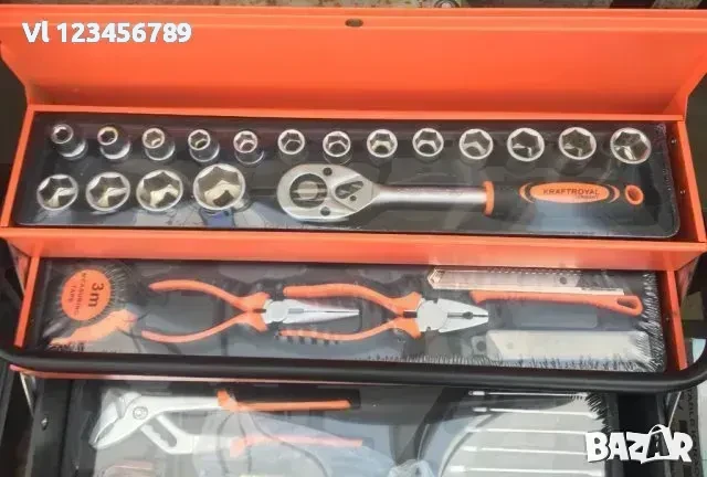 Сгъваем метален куфар с 5 отделения, пълен с най-необходимите инструменти - 85 части
