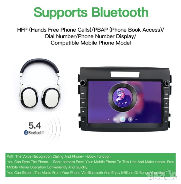 6. Bluetooth: Може да възпроизвежда стерео музика чрез Bluetooth от